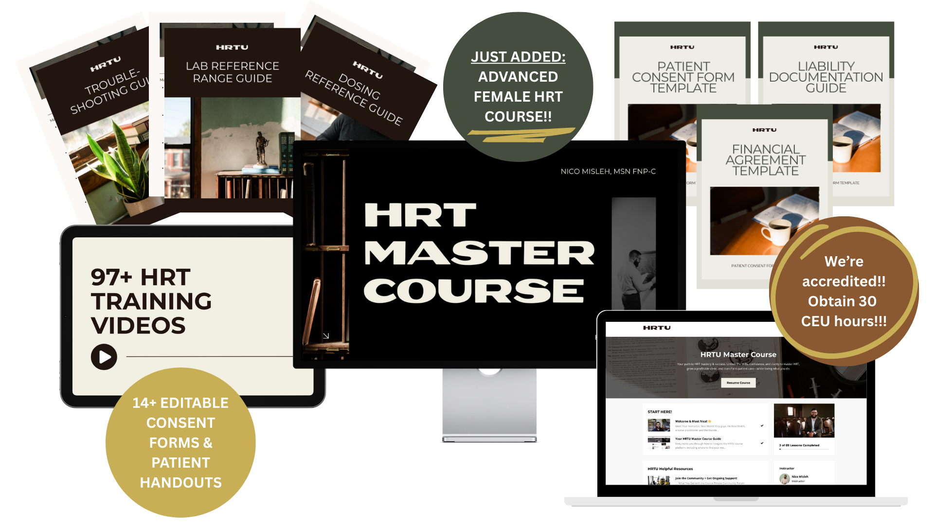 The Master Course is our signature, full-spectrum foundation for evidence-based hormone optimization, including the newly added Advanced Female HRT module. Everything inside is designed to simplify complex medicine and help you treat patients with absolute clarity and confidence.